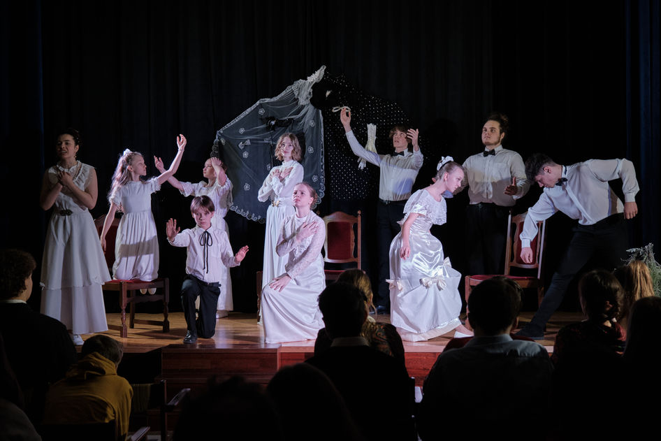 В литературной композиции разыгрывается салон, куда приходят поэты. На таких «журфиксах» собирались не только литераторы, но также актеры, пианисты, композиторы, художники – все творческие люди – и обменивались своими новыми произведениями, новыми образами, разыгрывали сюжетные сценки. В спектакле не просто прозвучат стихи Серебряного века. Они подобраны по смыслу, связаны сюжетно.